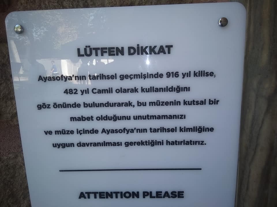 Artıq Ayasofya muzeyi yenidən məscidə çevrilib. Narahat olanları da, müsbət qarşılayanları da başa düşmək olurdu. Amma həddindən çox sevinənləri də, həddindən çox üzülənləri də qəribə qarşıladım. Çünki hər iki tərəf məsələyə çox ideoloji yanaşır. Vacib olan abidənin qorunub saxlanması, tarixiliyinə zərər gəlməməsidir. İstanbulda məscid kifayət qədərdir. Ona görə Ayasofyanın da yenidən məscid olmasına həddindən artıq böyük sevinc nümayiş etdirərək baxmaq əksərən ideoloji yanaşmadır. Digər tərəfdən həddindən artıq üzülənlər də məsələyə ideoloji baxır. Hər halda 500 ilə yaxın məscid kimi fəaliyyət göstərərək xristian keçmiş qorunubsa, bundan sonra da qoruna bilər. Hər halda bu hadisəni yaxın dövrə kimi məscid olan bir abidənin sanki heç məscid olmamış kimi birdən-birə məscidə çevrilməsi kimi göstərmək doğru deyil. Bu abidənin istifadə olunmasının necəliyi Türkiyə dövlətinin haqları daxilindədir. Hətta iddialara görə Fateh Sultan Mehmed bu abidəni özü sənədlə almışdır. Sadəcə yenə də bəzi abidələrin dəyəri həqiqətən bəşəridir. İnsanlıq o abidələrdə özünü görür. Hər halda əsas olan o abidənin tarixiliyinə zərər vurmadan həm xristian, həm müsəlman əsərlərin qorunub saxlanmasıdır. Üzərində nə qədər haqq sahibi olsa da bu məsələdə Türkiyənin istər keçmişdə, istər bugün bu həssasiyyətlə hərəkət etdiyini müşahidə edərək anlamaq olar. Bu arada Ayasofya artıq məscid elan olunduğundan oraya həm müsəlmanlar, həm də qeyri müsəlmanlar biletsiz filan rahat daxil olub, ziyarət edə bilərlər.